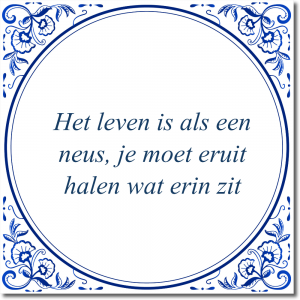 Is de tekst op dit tegeltje nog niet helemaal de spreuk of tekst waar je naar zocht? Klik dan hier om zelf een tegeltje te ontwerpen met je eigen tekst. Je kunt kiezen uit 3 verschillende tegel ontwerpen, variërend van klassiek tot modern.