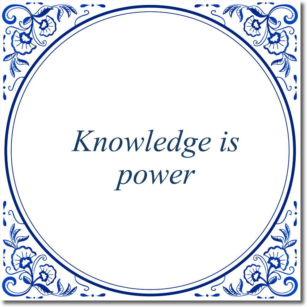 Een tegeltje is tijdloos, hip, leuk en altijd welkom. Tegeltjeswijsheid werkt voor iedereen. De tekst: “Knowledge is power” maak het een origineel cadeau. Je kunt echt elke vriend of elk familielid of elke kennis, blij maken met leuke wandtegeltjes. Tegeltjes zijn er met leuke teksten, spreuken, gezegdes, er is van alles mogelijk. Het is een blijvend cadeau en staat of hangt mooi aan iedere muur.