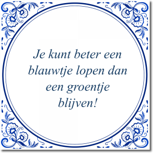 Is de tekst op dit tegeltje nog niet helemaal de spreuk of tekst waar je naar zocht? Klik dan hier om zelf een tegeltje te ontwerpen met je eigen tekst. Je kunt kiezen uit 3 verschillende tegel ontwerpen, variërend van klassiek tot modern.