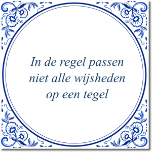 Is de tekst op dit tegeltje nog niet helemaal de spreuk of tekst waar je naar zocht? Klik dan hier om zelf een tegeltje te ontwerpen met je eigen tekst. Je kunt kiezen uit 3 verschillende tegel ontwerpen, variërend van klassiek tot modern.