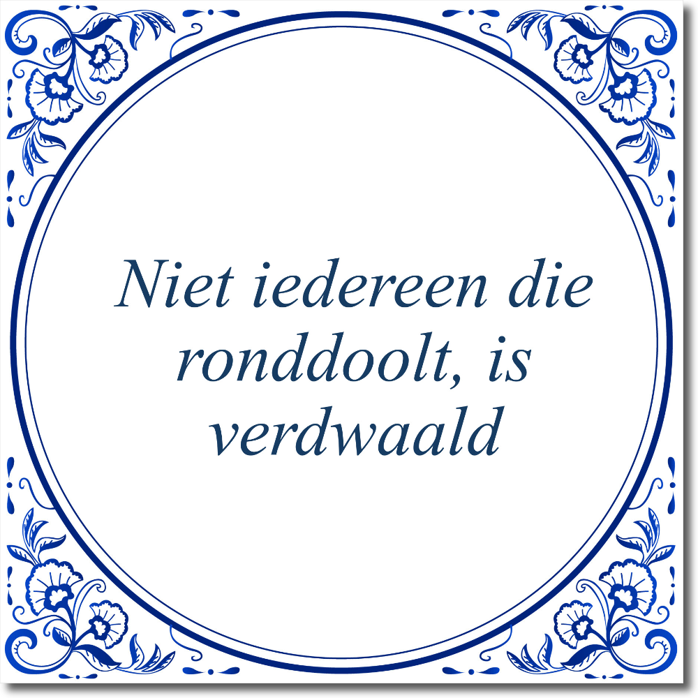 Een tegeltje is tijdloos, hip, leuk en altijd welkom. Tegeltjeswijsheid werkt voor iedereen. De tekst: “Niet iedereen die ronddoolt, is verdwaald” maak het een origineel cadeau. Je kunt echt elke vriend of elk familielid of elke kennis, blij maken met leuke wandtegeltjes. Tegeltjes zijn er met leuke teksten, spreuken, gezegdes, er is van alles mogelijk. Het is een blijvend cadeau en staat of hangt mooi aan iedere muur.