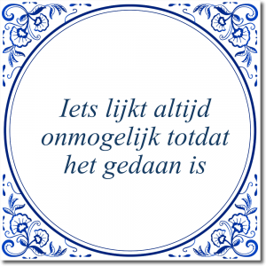Is de tekst op dit tegeltje nog niet helemaal de spreuk of tekst waar je naar zocht? Klik dan hier om zelf een tegeltje te ontwerpen met je eigen tekst. Je kunt kiezen uit 3 verschillende tegel ontwerpen, variërend van klassiek tot modern.