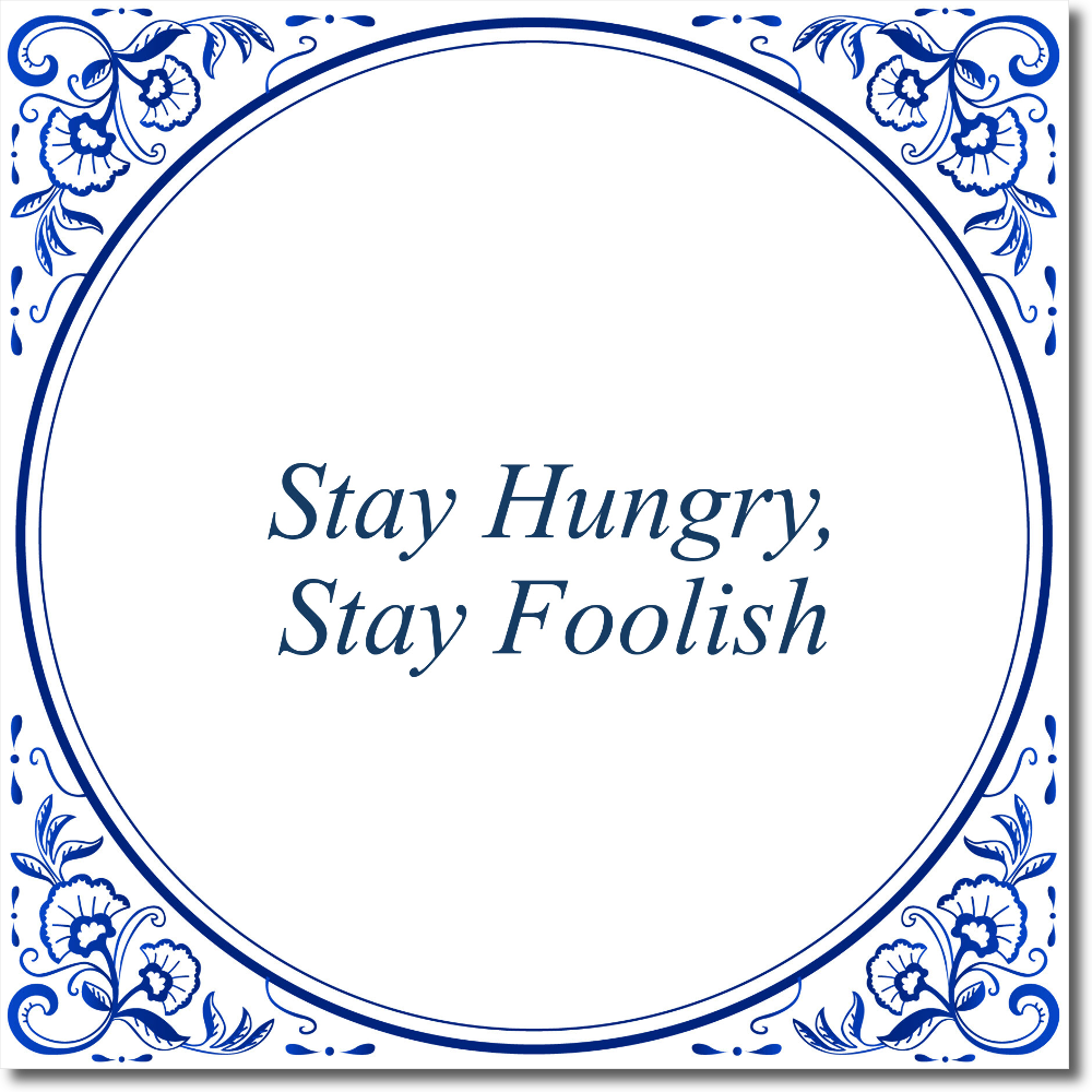 Een tegeltje is tijdloos, hip, leuk en altijd welkom. Tegeltjeswijsheid werkt voor iedereen. De tekst: “Stay Hungry, Stay Foolish” maak het een origineel cadeau. Je kunt echt elke vriend of elk familielid of elke kennis, blij maken met leuke wandtegeltjes. Tegeltjes zijn er met leuke teksten, spreuken, gezegdes, er is van alles mogelijk. Het is een blijvend cadeau en staat of hangt mooi aan iedere muur.